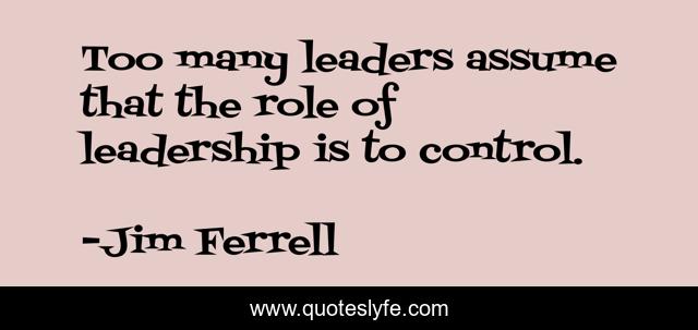 This page presents the quote "Too many leaders assume that the role of leadership is to control.". Author of this quote is Jim Ferrell. This quote is about control, leadership, leaders, control-others,.