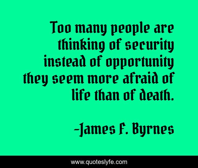 This page presents the quote "Too many people are thinking of security instead of opportunity they seem more afraid of life than of death.". Author of this quote is James F. Byrnes. .