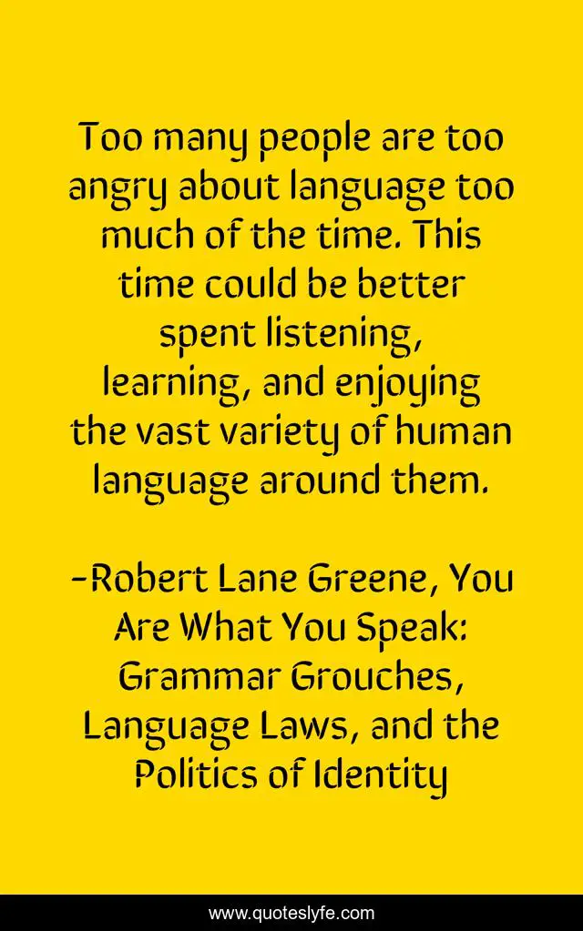 "Robert Lane Greene, You Are What You Speak: Grammar Grouches, Language Laws, and the Politics of Identity Quotes." Quoteslyfe.com, 2025. Fri. 05 Dec. 2025. <https://www.quoteslyfe.com/quote/Too-many-people-are-too-angry-about-185480>.