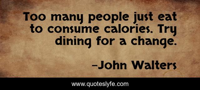 This page presents the quote "Too many people just eat to consume calories. Try dining for a change.". Author of this quote is John Walters. This quote is about try, change, people,.