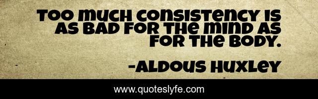 This page presents the quote "Too much consistency is as bad for the mind as for the body.". Author of this quote is Aldous Huxley. This quote is about positive, confidence, creating, change,.