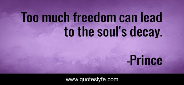 This page presents the quote "Too much freedom can lead to the soul's decay.". Author of this quote is Prince. This quote is about soul, lead, too much,.