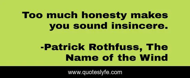 "Patrick Rothfuss, The Name of the Wind Quotes." Quoteslyfe.com, 2025. Tue. 09 Dec. 2025. <https://www.quoteslyfe.com/quote/Too-much-honesty-makes-you-sound-insincere-77524>.