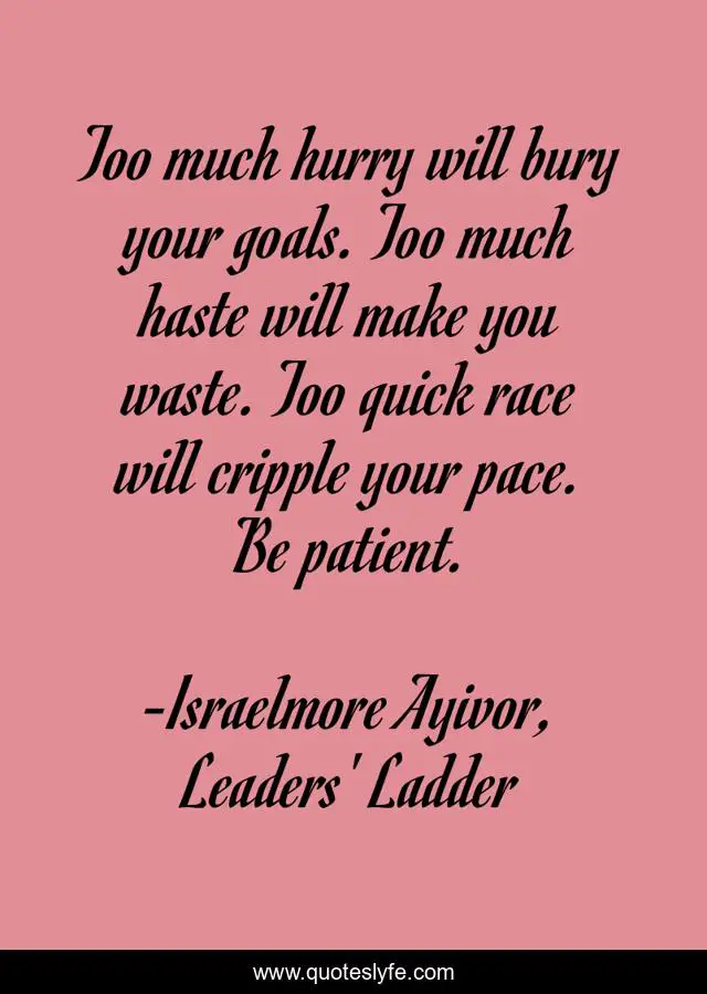 "Israelmore Ayivor, Leaders' Ladder Quotes." Quoteslyfe.com, 2025. Mon. 08 Dec. 2025. <https://www.quoteslyfe.com/quote/Too-much-hurry-will-bury-your-goals-141111>.
