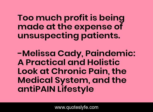 "Melissa Cady, Paindemic: A Practical and Holistic Look at Chronic Pain, the Medical System, and the antiPAIN Lifestyle Quotes." Quoteslyfe.com, 2025. Sat. 06 Dec. 2025. <https://www.quoteslyfe.com/quote/Too-much-profit-is-being-made-at-128468>.