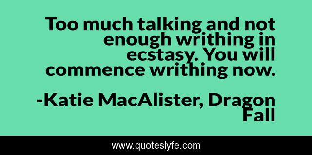 This page presents the quote "Too much talking and not enough writhing in ecstasy. You will commence writhing now.". Author of this quote is Katie MacAlister, Dragon Fall. This quote is about paranormal-romance, dragons,.