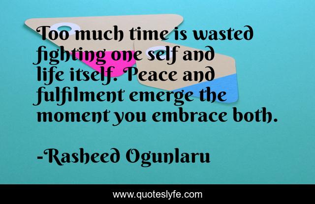 Too much time is wasted fighting one self and life itself. Peace and fulfilment emerge the moment you embrace both.