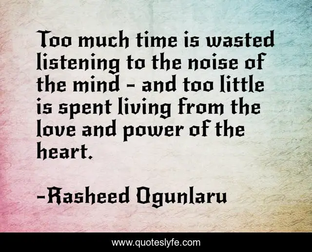Too much time is wasted listening to the noise of the mind - and too little is spent living from the love and power of the heart.