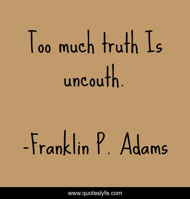 This page presents the quote "Too much truth Is uncouth.". Author of this quote is Franklin P. Adams. .