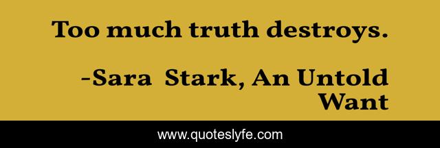 "Sara Stark, An Untold Want Quotes." Quoteslyfe.com, 2025. Mon. 08 Dec. 2025. <https://www.quoteslyfe.com/quote/Too-much-truth-destroys-200056>.