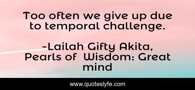 "Lailah Gifty Akita, Pearls of Wisdom: Great mind Quotes." Quoteslyfe.com, 2025. Fri. 05 Dec. 2025. <https://www.quoteslyfe.com/quote/Too-often-we-give-up-due-to-178777>.