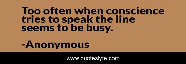 This page presents the quote "Too often when conscience tries to speak the line seems to be busy.". Author of this quote is Anonymous. .