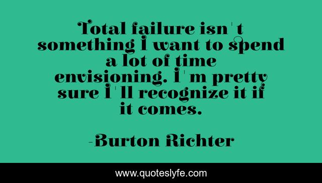 This page presents the quote "Total failure isn't something I want to spend a lot of time envisioning. I'm pretty sure I'll recognize it if it comes.". Author of this quote is Burton Richter. This quote is about pretty, time,.