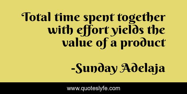 This page presents the quote "Total time spent together with effort yields the value of a product". Author of this quote is Sunday Adelaja. This quote is about life, blessing, finance, money, work, time-well-spent, job, joblessness, purpose,.