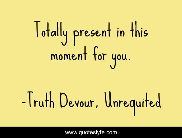 "Truth Devour, Unrequited Quotes." Quoteslyfe.com, 2025. Sun. 07 Dec. 2025. <https://www.quoteslyfe.com/quote/Totally-present-in-this-moment-for-you-16870>.