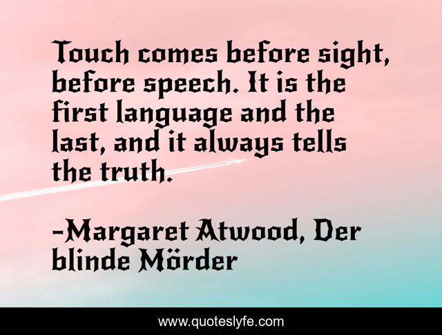 "Margaret Atwood, Der blinde Mörder Quotes." Quoteslyfe.com, 2025. Sun. 07 Dec. 2025. <https://www.quoteslyfe.com/quote/Touch-comes-before-sight-before-speech-It-158948>.