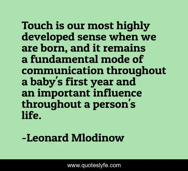 This page presents the quote "Touch is our most highly developed sense when we are born, and it remains a fundamental mode of communication throughout a baby's first year and an important influence throughout a person's life.". Author of this quote is Leonard Mlodinow. This quote is about baby, life, influence,.