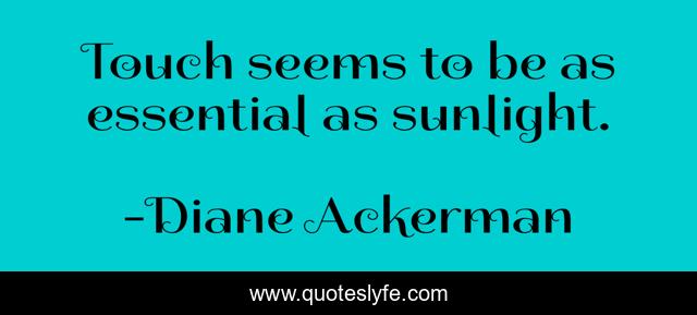 This page presents the quote "Touch seems to be as essential as sunlight.". Author of this quote is Diane Ackerman. This quote is about touch, seems, sunlight,.