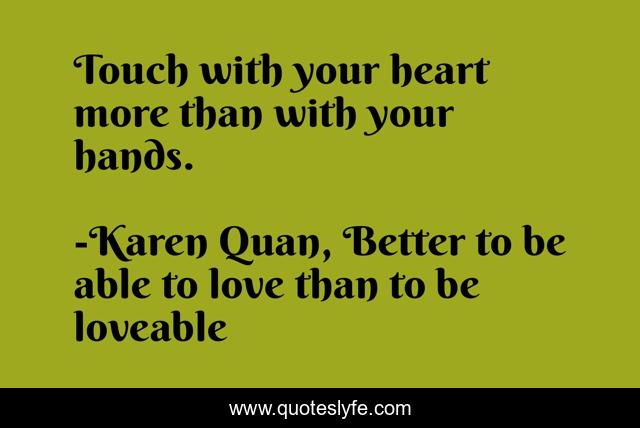 "Karen Quan, Better to be able to love than to be loveable Quotes." Quoteslyfe.com, 2025. Fri. 05 Dec. 2025. <https://www.quoteslyfe.com/quote/Touch-with-your-heart-more-than-with-81476>.
