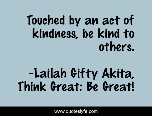 "Lailah Gifty Akita, Think Great: Be Great! Quotes." Quoteslyfe.com, 2025. Sun. 07 Dec. 2025. <https://www.quoteslyfe.com/quote/Touched-by-an-act-of-kindness-be-177650>.