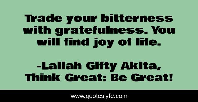 "Lailah Gifty Akita, Think Great: Be Great! Quotes." Quoteslyfe.com, 2025. Fri. 05 Dec. 2025. <https://www.quoteslyfe.com/quote/Trade-your-bitterness-with-gratefulness-You-will-85033>.
