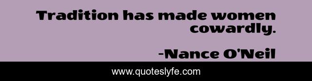"Nance O'Neil Quotes." Quoteslyfe.com, 2025. Mon. 08 Dec. 2025. <https://www.quoteslyfe.com/quote/Tradition-has-made-women-cowardly-302625>.