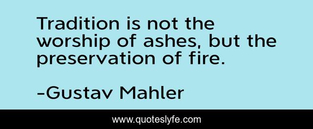 "Gustav Mahler Quotes." Quoteslyfe.com, 2025. Sun. 07 Dec. 2025. <https://www.quoteslyfe.com/quote/Tradition-is-not-the-worship-of-ashes-193833>.