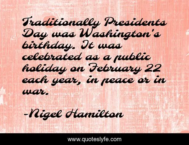 "Nigel Hamilton Quotes." Quoteslyfe.com, 2025. Sat. 06 Dec. 2025. <https://www.quoteslyfe.com/quote/Traditionally-Presidents-Day-was-Washington-s-birthday-313032>.