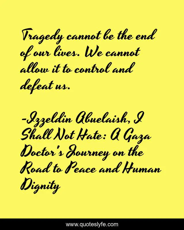 "Izzeldin Abuelaish, I Shall Not Hate: A Gaza Doctor's Journey on the Road to Peace and Human Dignity Quotes." Quoteslyfe.com, 2025. Sun. 14 Dec. 2025. <https://www.quoteslyfe.com/quote/Tragedy-cannot-be-the-end-of-our-172170>.