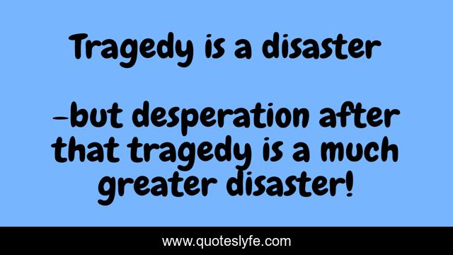 This page presents the quote "Tragedy is a disaster". Author of this quote is but desperation after that tragedy is a much greater disaster!. .