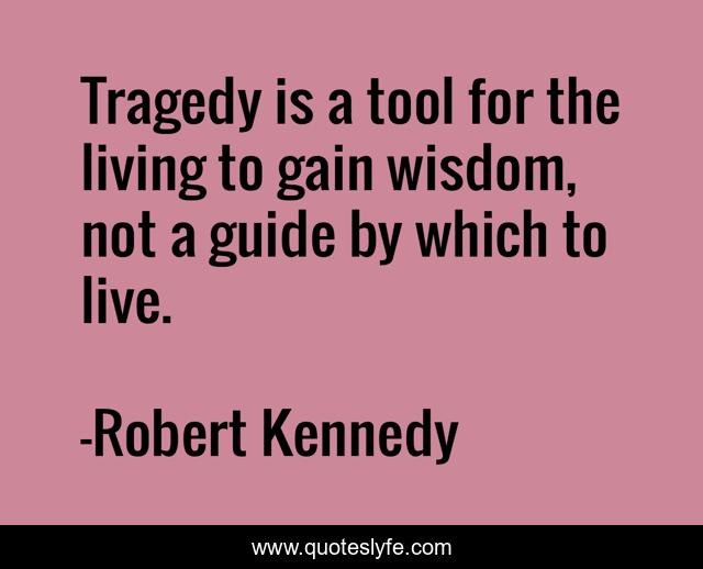This page presents the quote "Tragedy is a tool for the living to gain wisdom, not a guide by which to live.". Author of this quote is Robert Kennedy. This quote is about living, live, tragedy,.
