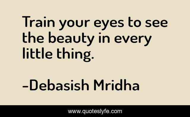 This page presents the quote "Train your eyes to see the beauty in every little thing.". Author of this quote is Debasish Mridha. This quote is about beauty-in-every-little-thing, see-the-beauty, debasish, mridha, philosophy, debasish-mridha, train-your-eyes,.