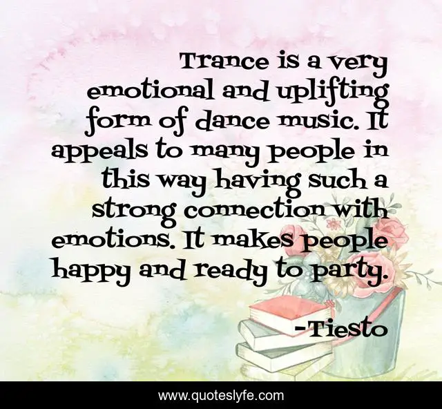 This page presents the quote "Trance is a very emotional and uplifting form of dance music. It appeals to many people in this way having such a strong connection with emotions. It makes people happy and ready to party.". Author of this quote is Tiesto. This quote is about dance, strong, happy,.