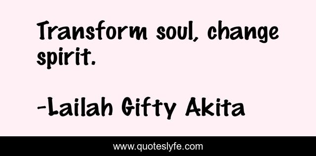 This page presents the quote "Transform soul, change spirit.". Author of this quote is Lailah Gifty Akita. This quote is about spirituality, change-life, soul,.