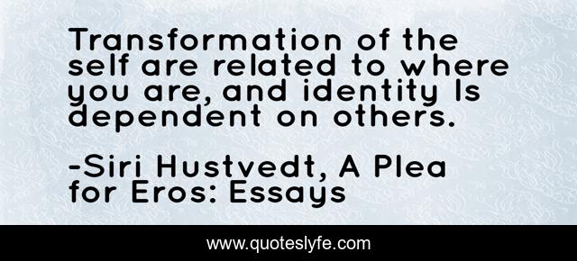 This page presents the quote "Transformation of the self are related to where you are, and identity Is dependent on others.". Author of this quote is Siri Hustvedt, A Plea for Eros: Essays. This quote is about transformation, identity,.