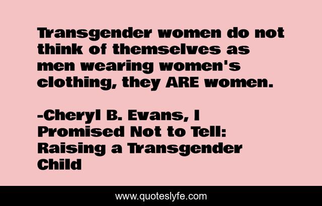 "Cheryl B. Evans, I Promised Not to Tell: Raising a Transgender Child Quotes." Quoteslyfe.com, 2025. Sat. 06 Dec. 2025. <https://www.quoteslyfe.com/quote/Transgender-women-do-not-think-of-themselves-241237>.
