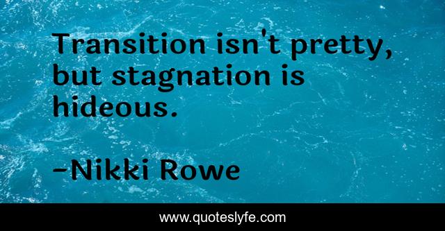 This page presents the quote "Transition isn't pretty, but stagnation is hideous.". Author of this quote is Nikki Rowe. This quote is about better-yourself, compassion, guidance, transition, inner-being, know-yourself, stillness, growth, kindess,.