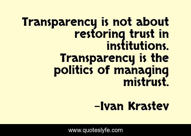 This page presents the quote "Transparency is not about restoring trust in institutions. Transparency is the politics of managing mistrust.". Author of this quote is Ivan Krastev. This quote is about politics, transparency,.