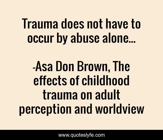 "Asa Don Brown, The effects of childhood trauma on adult perception and worldview Quotes." Quoteslyfe.com, 2025. Fri. 05 Dec. 2025. <https://www.quoteslyfe.com/quote/Trauma-does-not-have-to-occur-by-103189>.