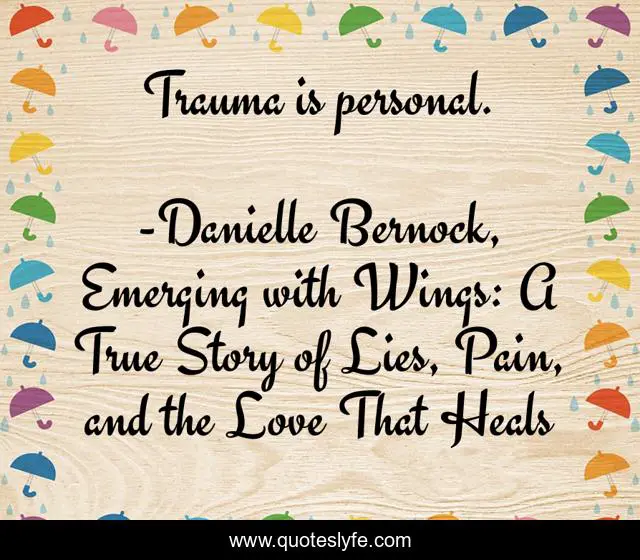 "Danielle Bernock, Emerging with Wings: A True Story of Lies, Pain, and the Love That Heals Quotes." Quoteslyfe.com, 2025. Fri. 05 Dec. 2025. <https://www.quoteslyfe.com/quote/Trauma-is-personal-167553>.