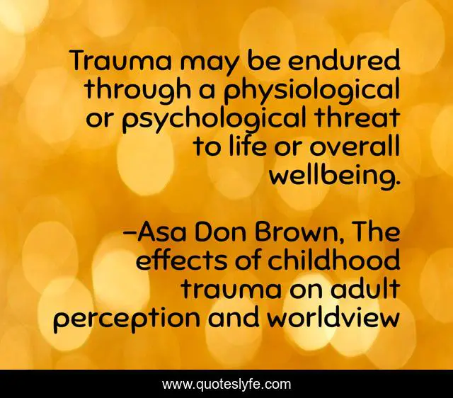 "Asa Don Brown, The effects of childhood trauma on adult perception and worldview Quotes." Quoteslyfe.com, 2025. Fri. 05 Dec. 2025. <https://www.quoteslyfe.com/quote/Trauma-may-be-endured-through-a-physiological-103553>.