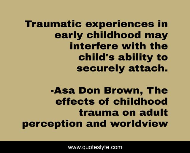 "Asa Don Brown, The effects of childhood trauma on adult perception and worldview Quotes." Quoteslyfe.com, 2025. Sat. 06 Dec. 2025. <https://www.quoteslyfe.com/quote/Traumatic-experiences-in-early-childhood-may-interfere-210216>.