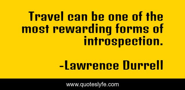 This page presents the quote "Travel can be one of the most rewarding forms of introspection.". Author of this quote is Lawrence Durrell. This quote is about introspection, rewarding,.