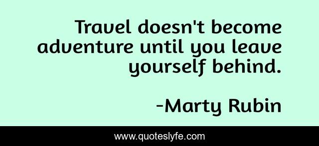 This page presents the quote "Travel doesn't become adventure until you leave yourself behind.". Author of this quote is Marty Rubin. This quote is about transcendence, travel, adventure,.