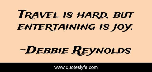 This page presents the quote "Travel is hard, but entertaining is joy.". Author of this quote is Debbie Reynolds. This quote is about joy, entertaining, hard,.