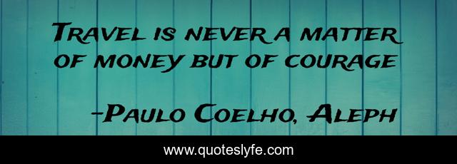 This page presents the quote "Travel is never a matter of money but of courage". Author of this quote is Paulo Coelho, Aleph. This quote is about enthusiasm, philosophy, inspirational,.