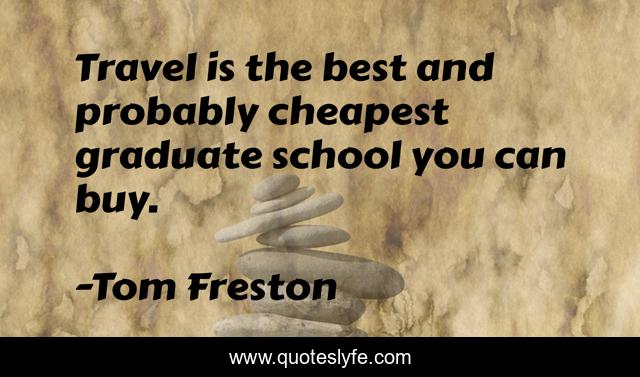 This page presents the quote "Travel is the best and probably cheapest graduate school you can buy.". Author of this quote is Tom Freston. This quote is about school, best,.
