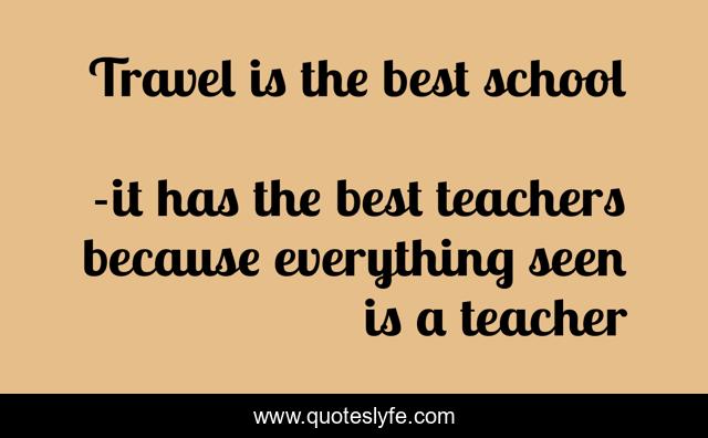 "it has the best teachers because everything seen is a teacher Quotes." Quoteslyfe.com, 2025. Mon. 08 Dec. 2025. <https://www.quoteslyfe.com/quote/Travel-is-the-best-school-98054>.