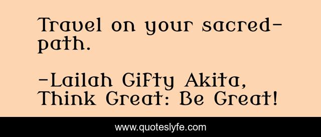 "Lailah Gifty Akita, Think Great: Be Great! Quotes." Quoteslyfe.com, 2025. Fri. 05 Dec. 2025. <https://www.quoteslyfe.com/quote/Travel-on-your-sacred-path-107163>.