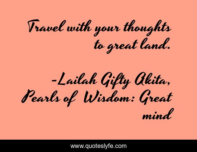 "Lailah Gifty Akita, Pearls of Wisdom: Great mind Quotes." Quoteslyfe.com, 2025. Sat. 06 Dec. 2025. <https://www.quoteslyfe.com/quote/Travel-with-your-thoughts-to-great-land-126138>.